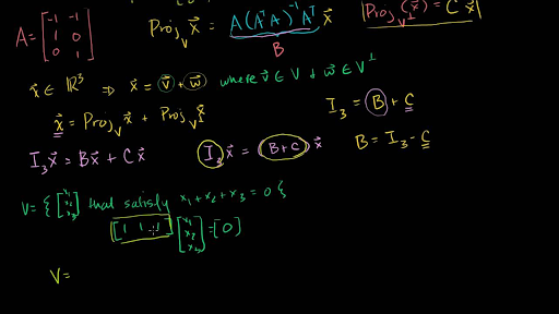 The column space of P is spanned by a because for any b Pb lies on the line determined by a. A projection matrix P is orthogonal iff PP 1 where P denotes the adjoint matrix of P. In other words we can compute the closest vector by solving a system of linear equations.